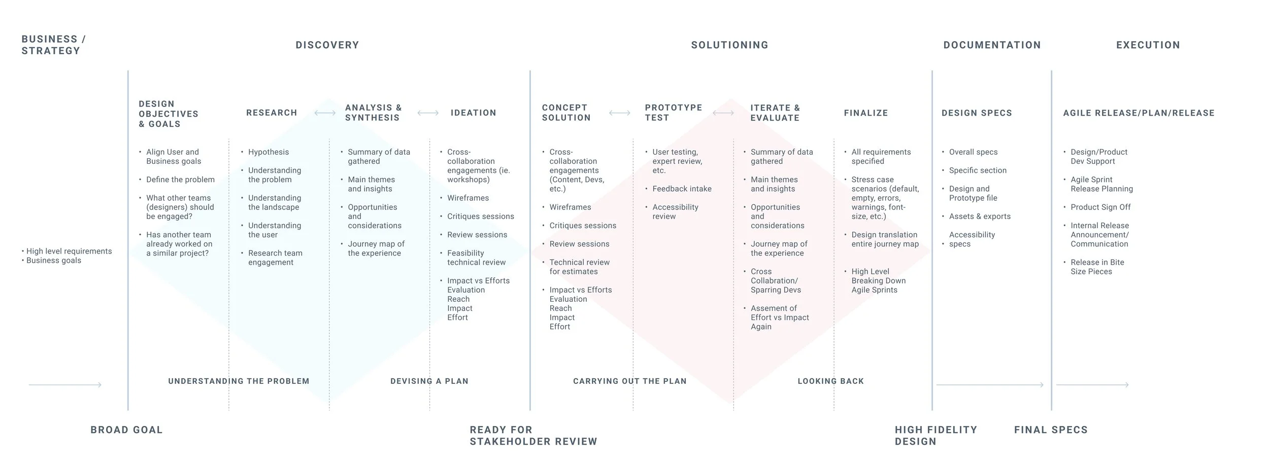 No two projects are the same, and this is a general overview of how I work alongside people. Some projects may skip steps or change the order, which is fine because the design process isn’t always straight. This is a general outline that explains the stages and the work involved.